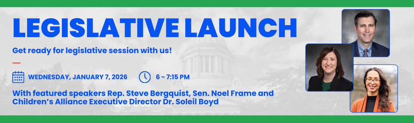 Get ready for the legislative session with us! At this virtual event you’ll hear directly from Representative Steve Bergquist, Senator Noel Frame, and Children’s Alliance policy staff about the legislation we’re pursuing in 2026 and how you can use your power to advocate for the policies and programs that matter to you. About our speakers: […]