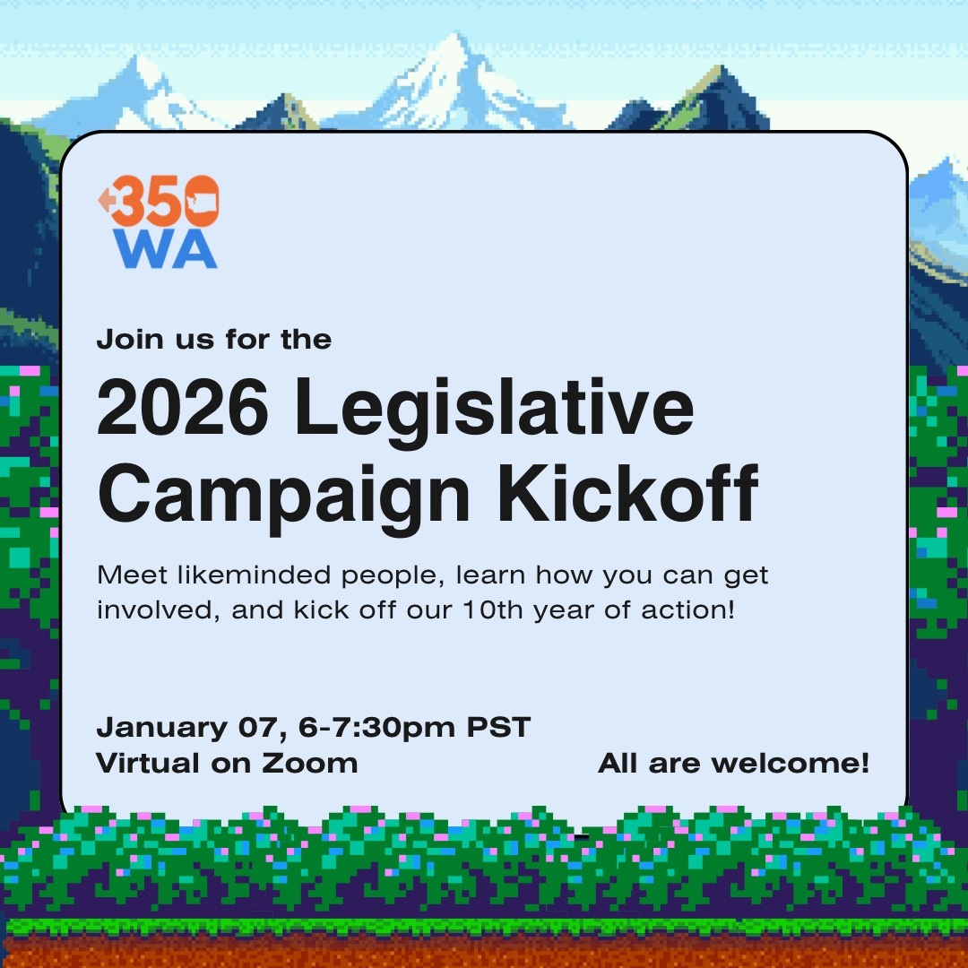 Join 350 Seattle for CAT’s virtual 2026 Legislative Campaign Kickoff Event on Wednesday, January 7th from 6:00-7:30 PM! We are entering our 10th year of CAT and hope you can […]